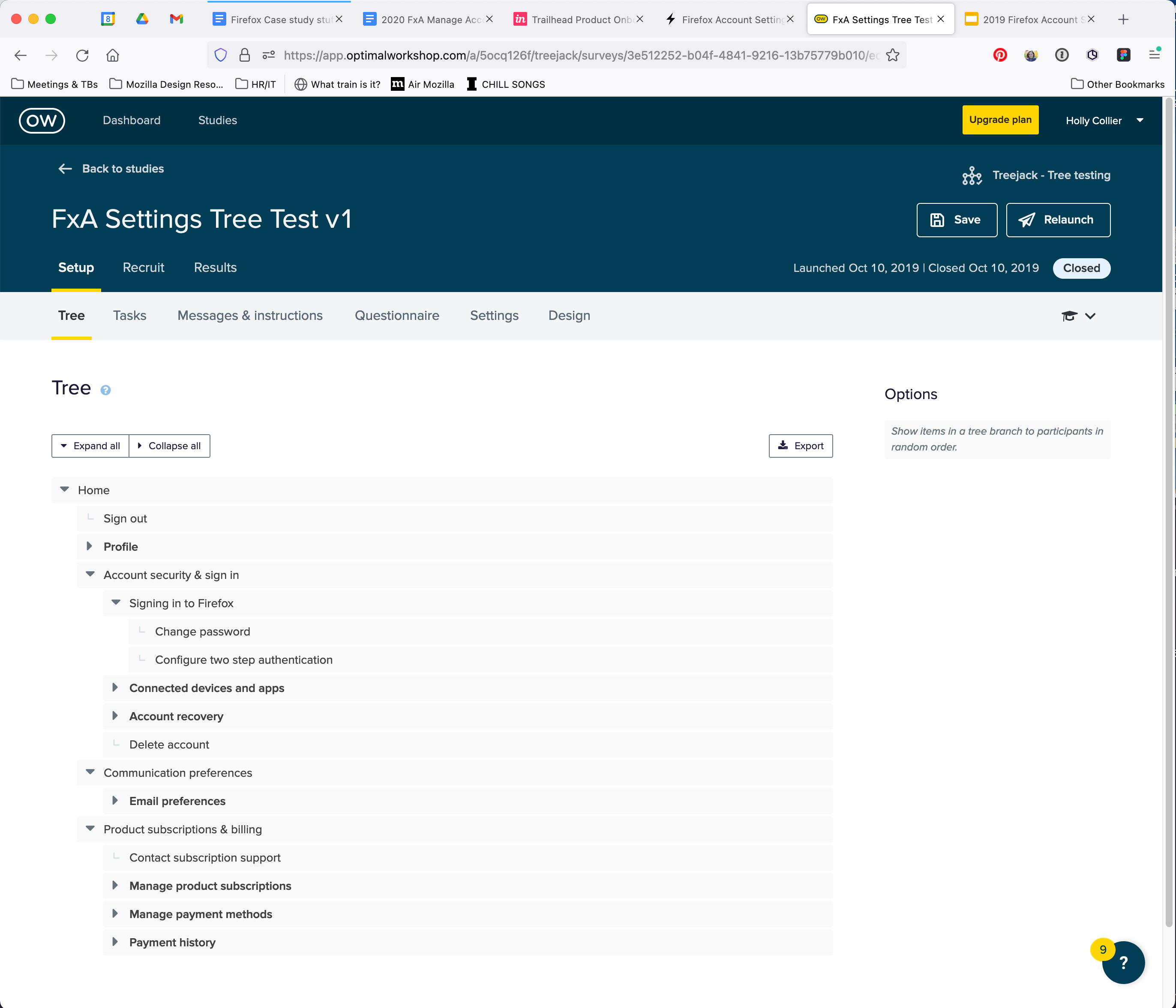 - The Firefox Account settings website went live in early 2021, and retains the information architecture recommended by the study.